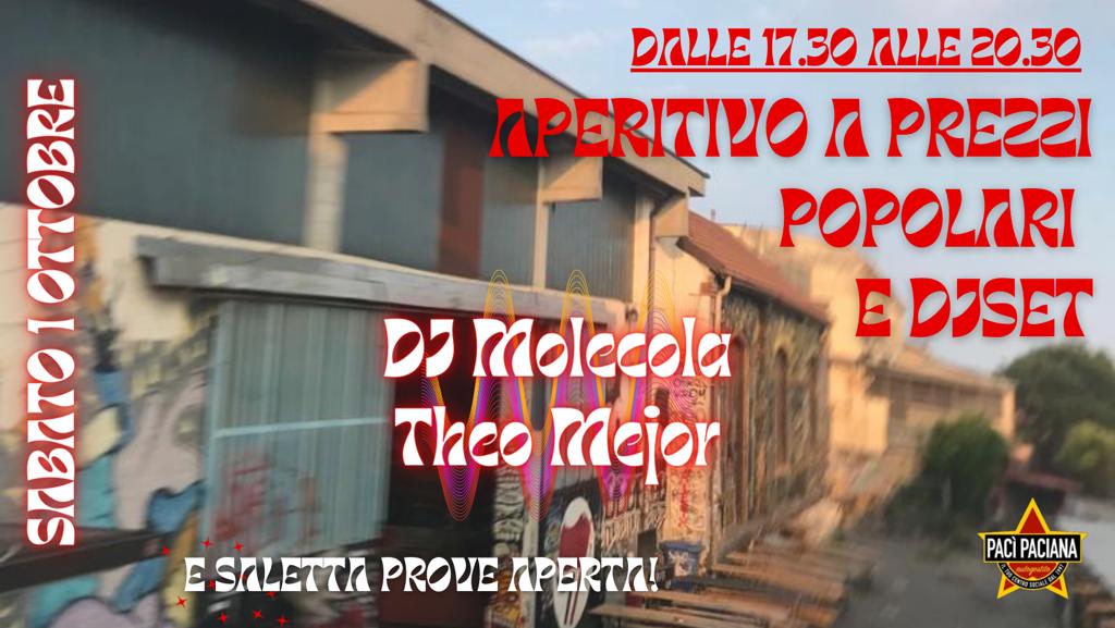 Sabato 1 ottobre il centro sociale Pacì Paciana offre la possibilità di trascorrere insieme la serata a partire da un aperitivo per poi proseguire con live durante la serata.