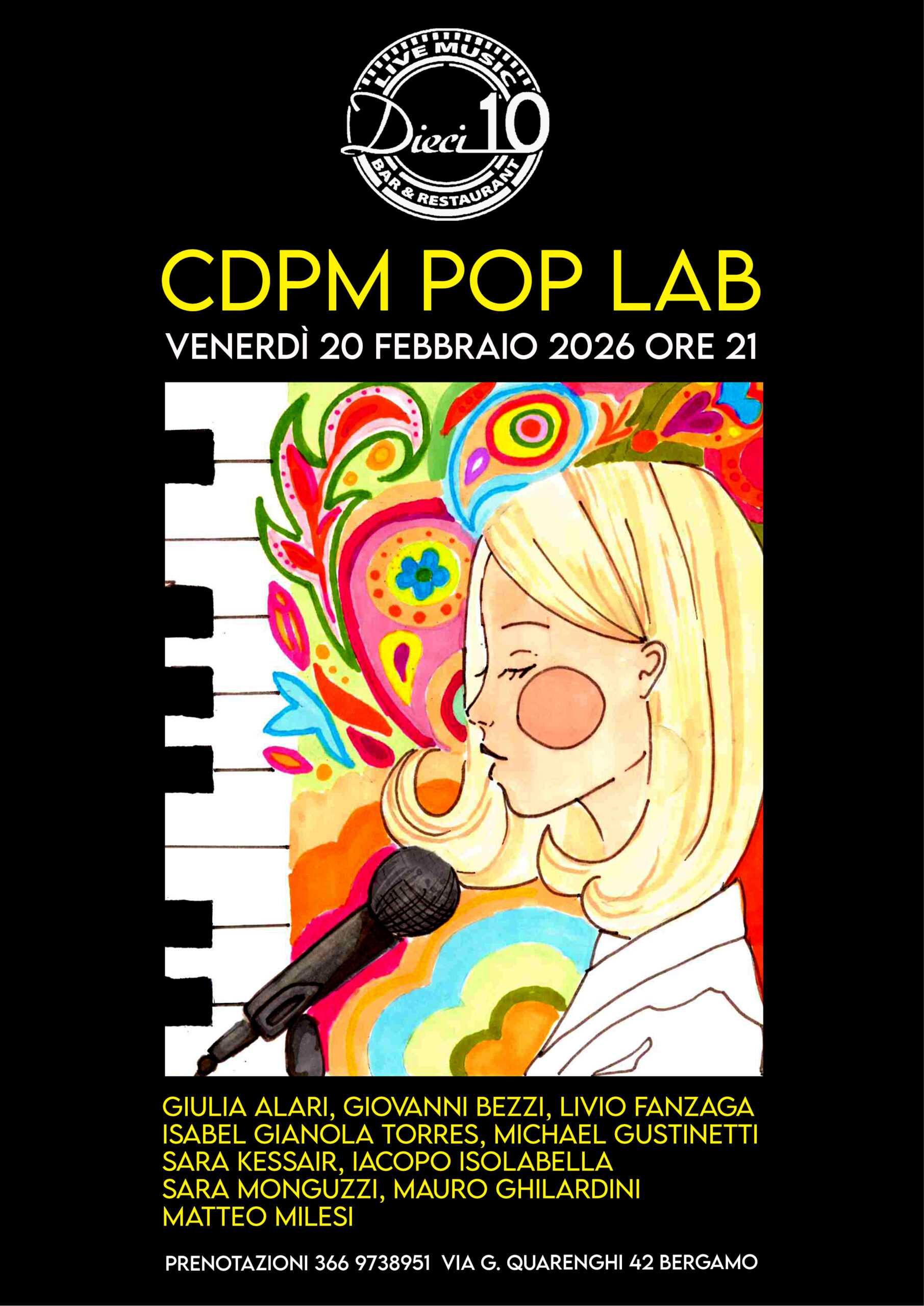 Al Dieci10 di Bergamo, รจ in programma una serata dedicata alla musica pop.