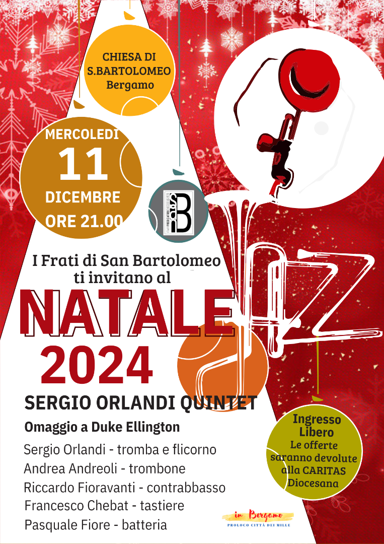 I frati di San Bartolomeo invitano al concerto di Natale con il Sergio Orlandi Quintet, per attendere insieme e in una calda atmosfera il Natale. Le offerte raccolte saranno devolute alla Caritas Diocesana.