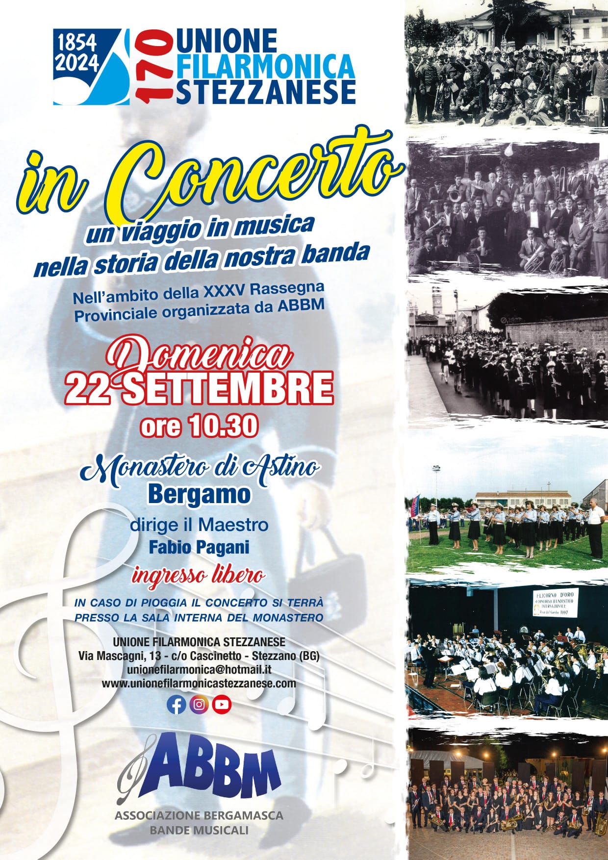 L'Unione Filarmonica Stezzanese è lieta di esibirsi in occasione della 35esima rassegna concertistica estiva di ABBM e dei suoi 170 anni di anniversario di fondazione.