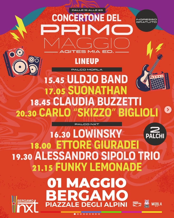 n grande evento per vivere tutti insieme la Festa dei Lavoratori, una piazza con due palchi, musica dal vivo, food&drink e il pubblico!