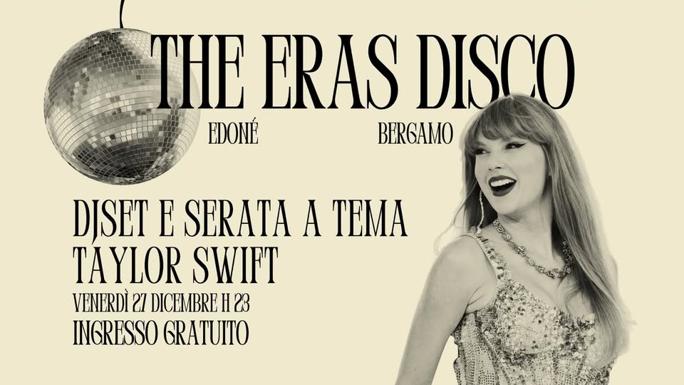 Il tour di Taylor Swift approda (più o meno) anche all’Edoné con The Eras Disco, la serata a tema Taylor Swift! "It's been a long time coming but" si annuncia questo evento con la tipica frase che usa la cantante in apertura dei suoi concerti!