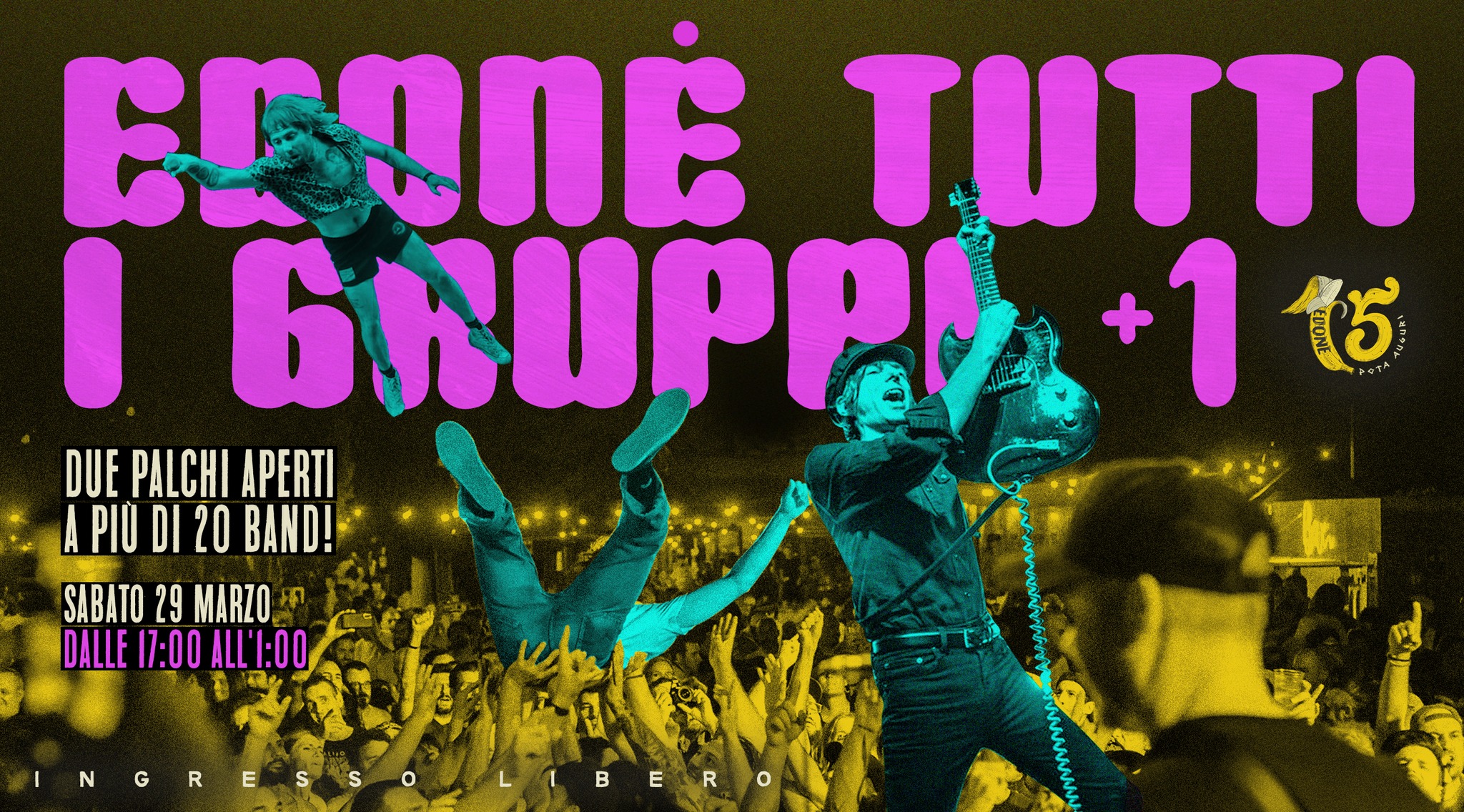 Dalle 17 fino a sera, ping pong da un palco all’altro, perché ce ne saranno due! La maratona musicale sarà pilotata da più di 20 band e zero pause, Un evento in occasione del compleanno di Edoné.