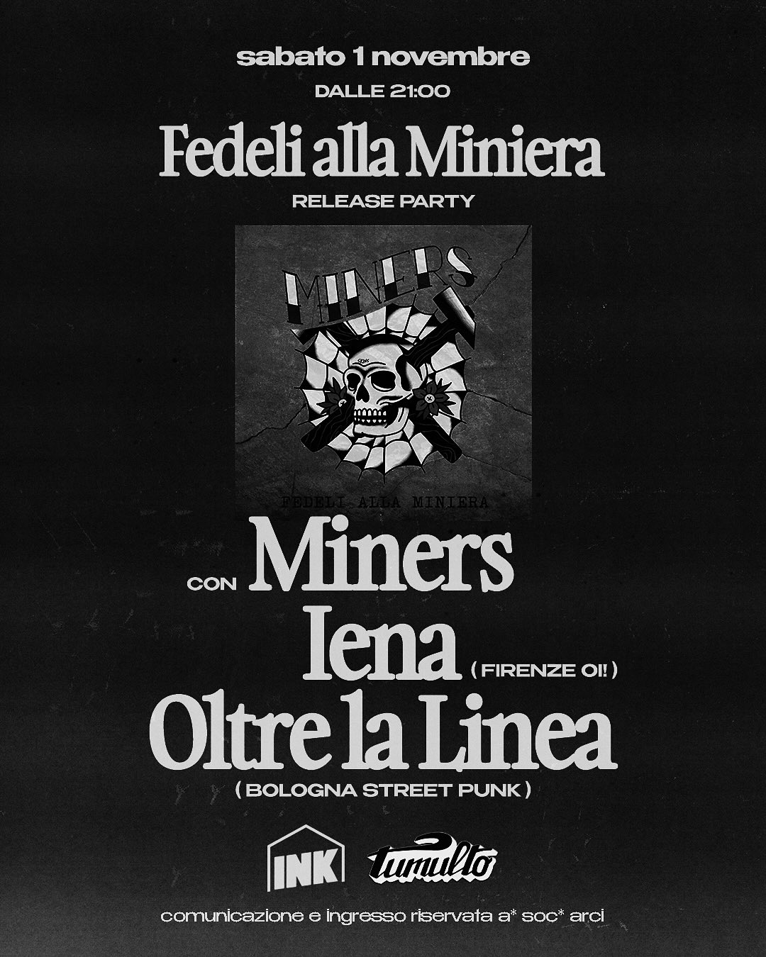 A distanza di 7-8 anni dal loro primo lavoro, i Miners sono tornati quest'anno con un nuovo LP, 12 tracce trascinanti e potenti da cantare sotto il palco. Uno dei migliori album Oi! della nostra scena, «Fedeli alla miniera» è un album di steet punk con testi in cui è facile ritrovarsi, reali e mai banali.