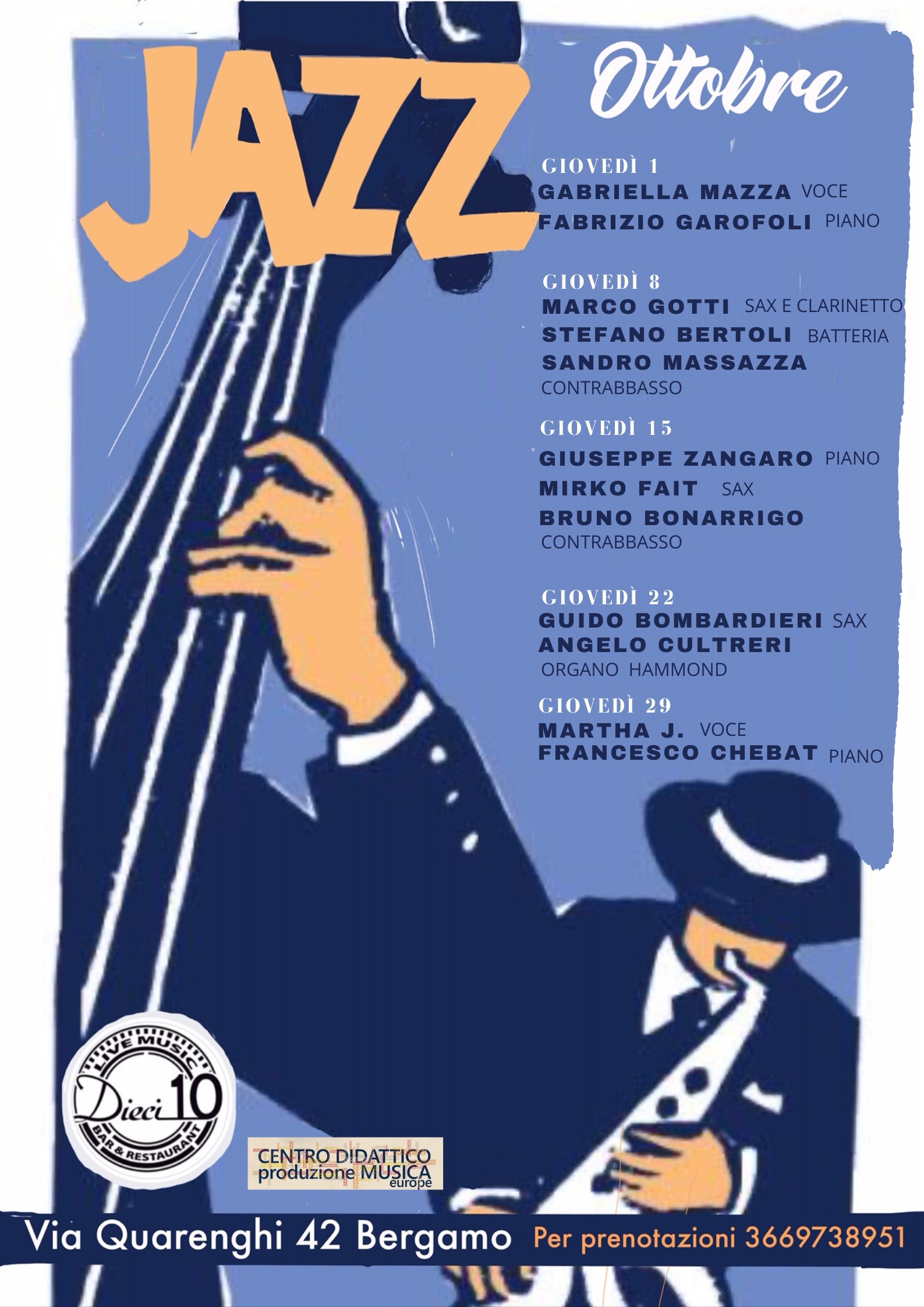 Tutti i giovedì di Ottobre sarà il jazz a farla da padrone al Dieci 10. Cinque sono gli appuntamenti da non perdere per chi vuole lasciarsi trasportare dalla musica, da suoni ricercati o più semplicemente trascorrere una serata diversa.