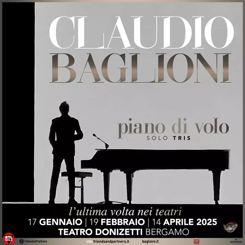 Dopo il successo dei tour “Solo” e “SoloBIS”, CLAUDIO BAGLIONI riprende il suo percorso concertistico assolo con “PIANO DI VOLO soloTRIS”, il terzo, nuovo e perfezionato capitolo dell’esperienza musicale dal vivo nei teatri lirici. “PIANO DI VOLO” è un concerto-racconto del cantautore, unico protagonista sulla scena. Un’impresa innovativa e sempre rinnovata, una trasvolata solitaria in cui l’interprete, il compositore, il musicista e l’intrattenitore s’incontrano tra musica e invenzione, parola e narrazione, storia e sperimentazione, rigore e improvvisazione.