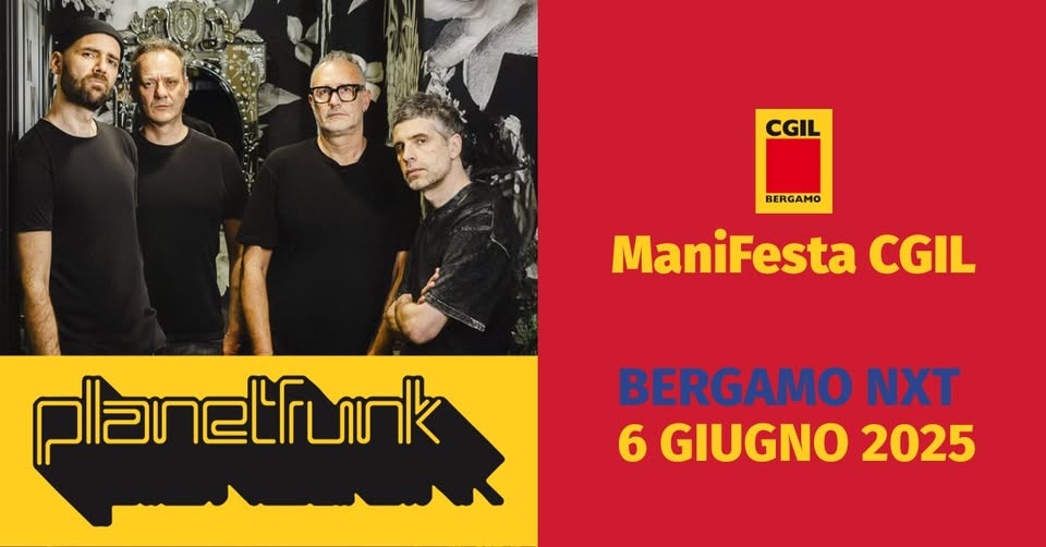 I Planet Funk live a Bergamo! Torna ManiFesta, la festa della CGIL di Bergamo. Una serata di musica e partecipazione, con i Planet Funk sul palco e tanti spazi per incontrarci, parlare di lavoro, diritti, futuro.