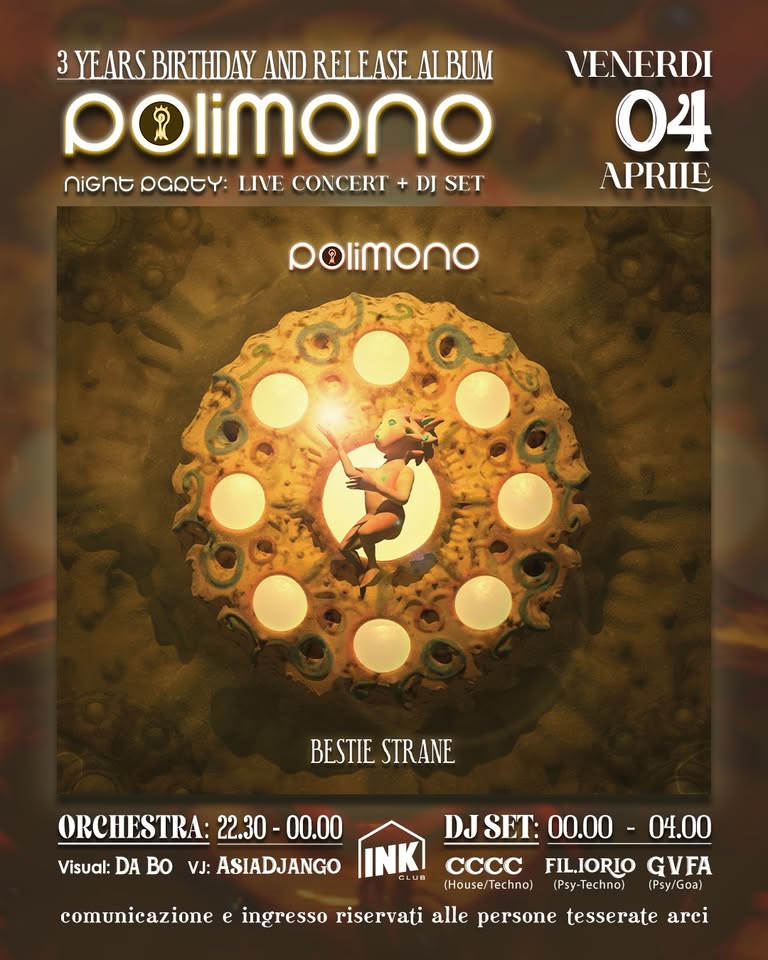 Proseguono i concerti live sul palco, con la celebrazione dei 3 anni della Polimono Orchestra, che presenterà il nuovo disco "Bestie Strane", seguita da un party a cura di CCCC, Fil. Iorio e GVFA.