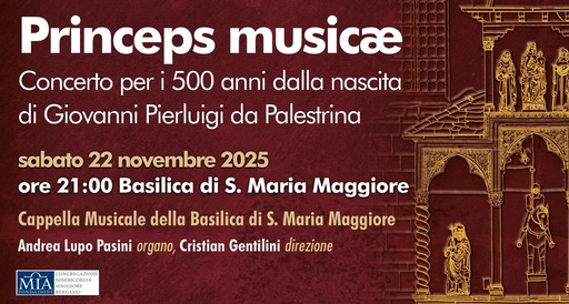 In occasione della festa di Santa Cecilia, la Cappella Musicale della Basilica di Santa Maria Maggiore rende omaggio a Giovanni Pierluigi da Palestrina nel 500o anniversario della nascita, celebrando uno dei massimi protagonisti della storia della musica occidentale. Considerato princeps musicae, il โprincipe della musicaโ, Palestrina รจ universalmente riconosciuto come il padre del contrappunto moderno: la scelta del 22 novembre, giorno dedicato alla patrona dei musicisti, conferisce allโevento un ulteriore valore simbolico e spirituale.