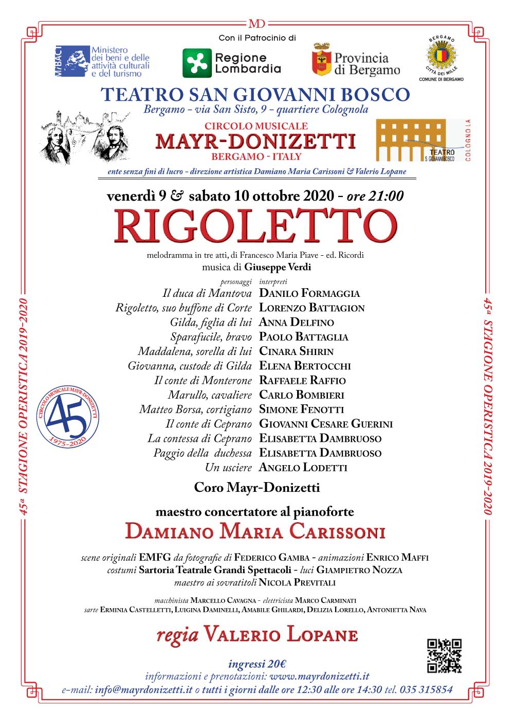 Come ultimo spettacolo della 45° stagione operistica, sospesa a causa dell'emergenza sanitaria, vede in scena il melodramma in tre atti sulle musiche di Verdi.
