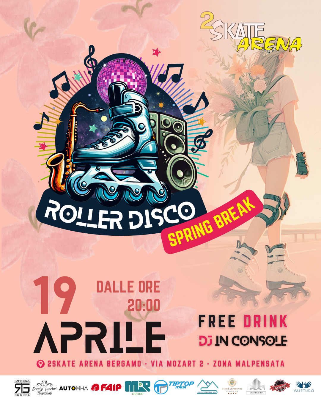 Preparati a vivere una notte unica: sabato 19 aprile arriva alla 2Skate Arena di Bergamo il party più atteso della primavera… Spring break roller disco!
