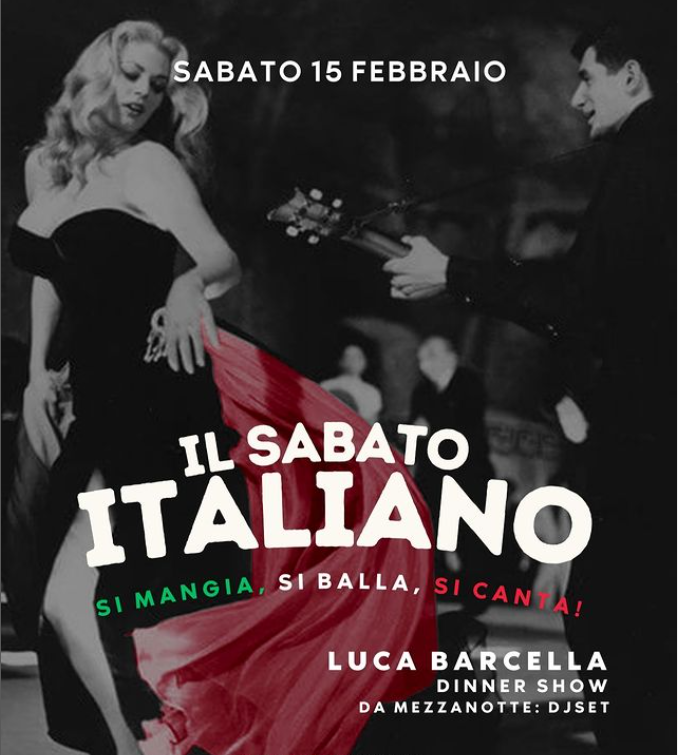 Un sabato italiano: la serata più carica e coinvolgente dove si mangia, si balla e si canta tutti insieme, con il one man show Luca Barcella.