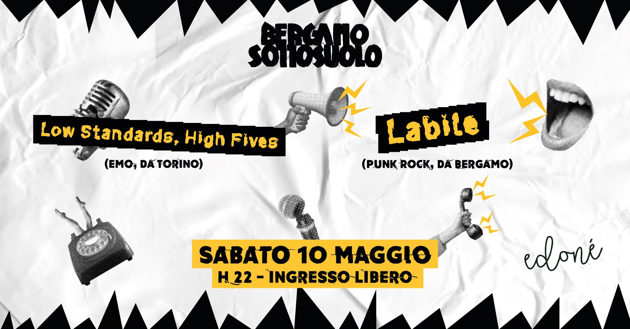 Chiudiamo la stagione in saletta con due band dal cuore enorme e dai pezzi travolgenti. Arrivano i Low Standards e gli High Fives direttamente da Torino e i Labile, band local.