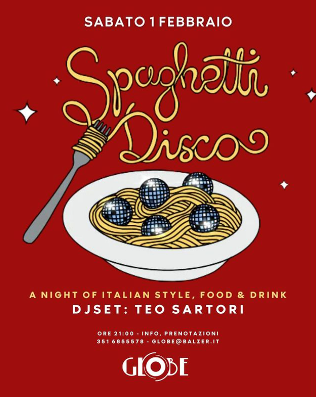 A night of italian style, food & drink. Immergiti in un’atmosfera tutta italiana, con il djset di Teo Sartori e l'incredibile cucina del Globe.