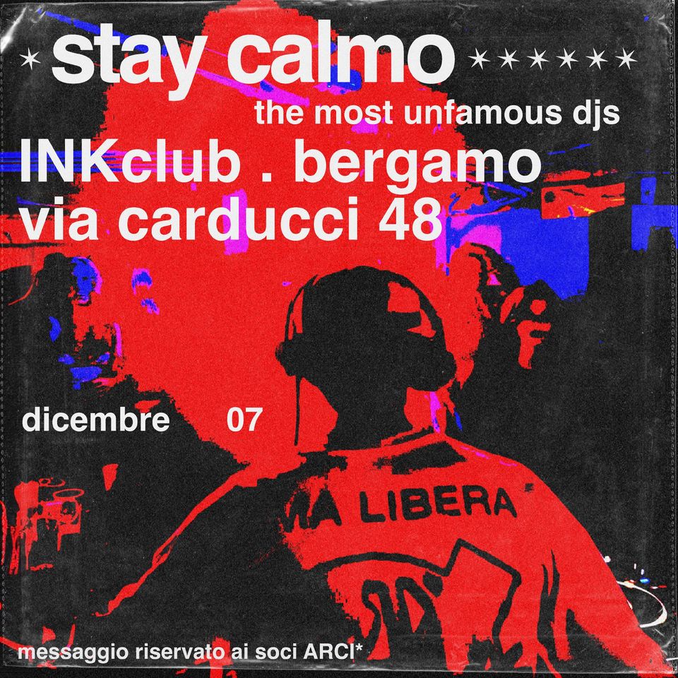 Torna Stay Calmo, l'evento underground più amato di Bergamo! Preparatevi a una notte indimenticabile all'Ink Club, con musica che vi farà ballare fino all'alba. Un mix perfetto di nostalgia e sonorità innovative.