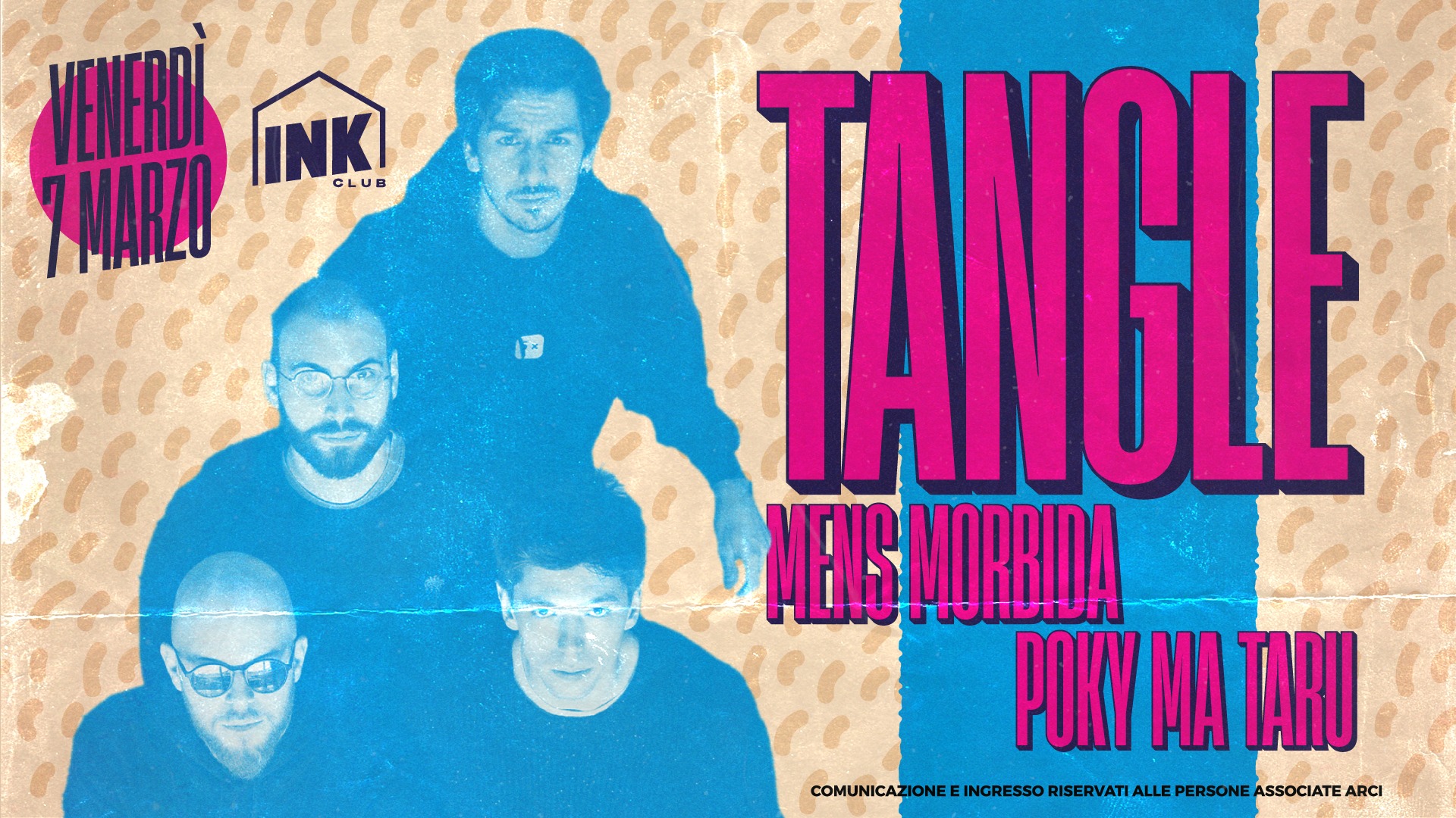 Proseguono i concerti live al club! Questa sera sul palco ci saranno i Tangle, band formata nel 2019 da quattro amici musicisti.