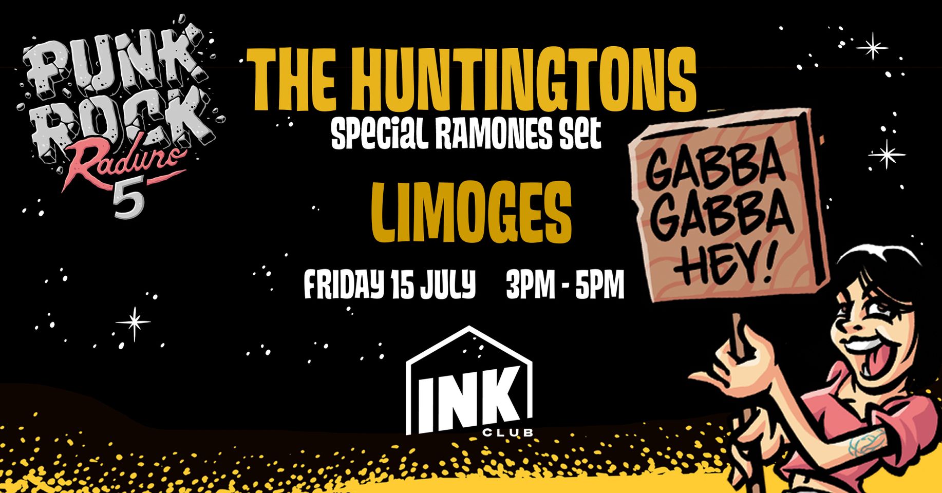L'evento si svolgeràallìInk Club di Bergamo alle 15:00 per vedere Limoges presentare una cover molto speciale dei Ramones creata nientemeno che dai The Huntingtons!