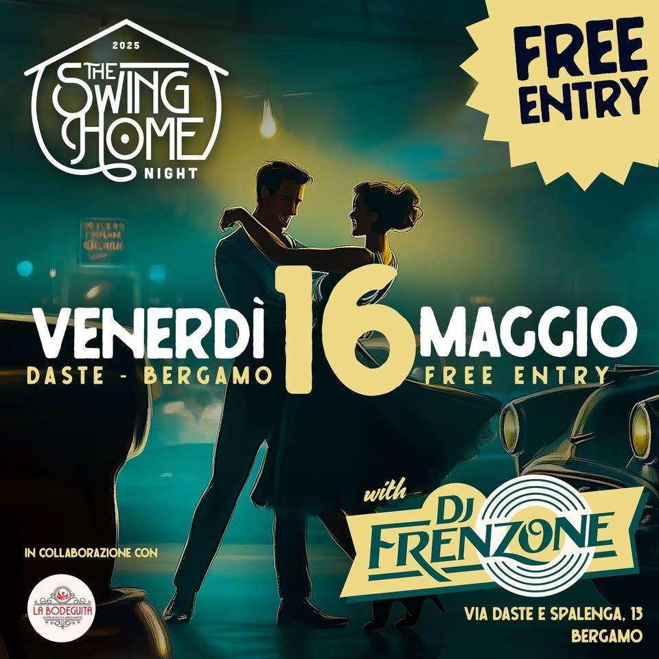 The Swing Home Night è una pausa dal nostro tempo per un viaggio dettato dalla musica dagli anni 20 ai 60, travolti dall'energia artistico-culturale dell'epoca. DJ-set e Live Music Performance vi accompagneranno tutta la notte... e se non conoscete i passi, non vi preoccupate, ve li insegnamo noi!!! Boogie Woogie travolgenti, Lindy Hop scatenati, Drink di qualità e un' atmosfera nostalgica al punto giusto. Tu vieni, ma sappi che poi non potrai più farne a meno!