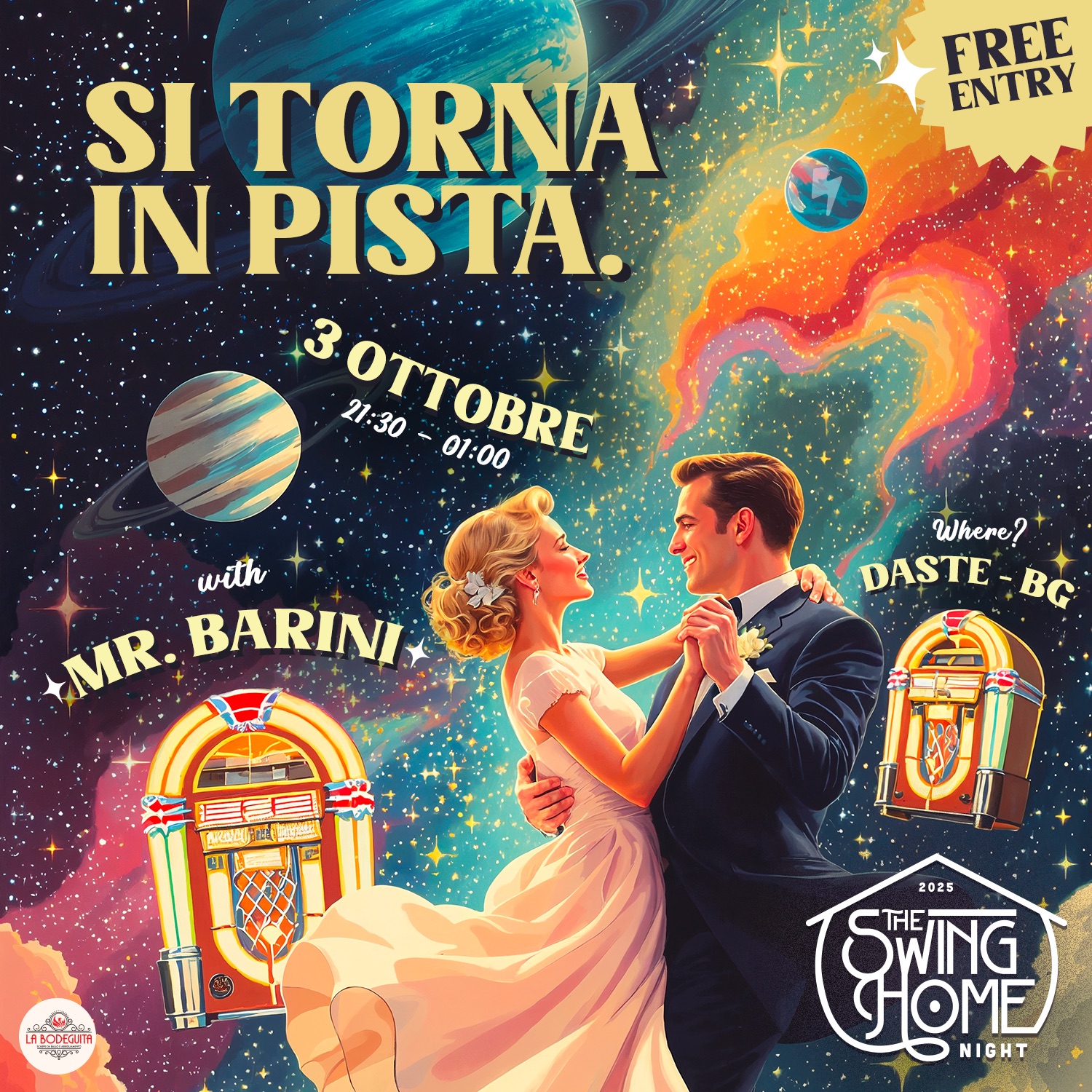 Venerdì 3 ottobre, dalle 21:30 all’01:00 si torna a danzare con The Swing Home Night, un evento gratuito che farà vibrare il cuore della comunità swing bergamasca (e non solo!)