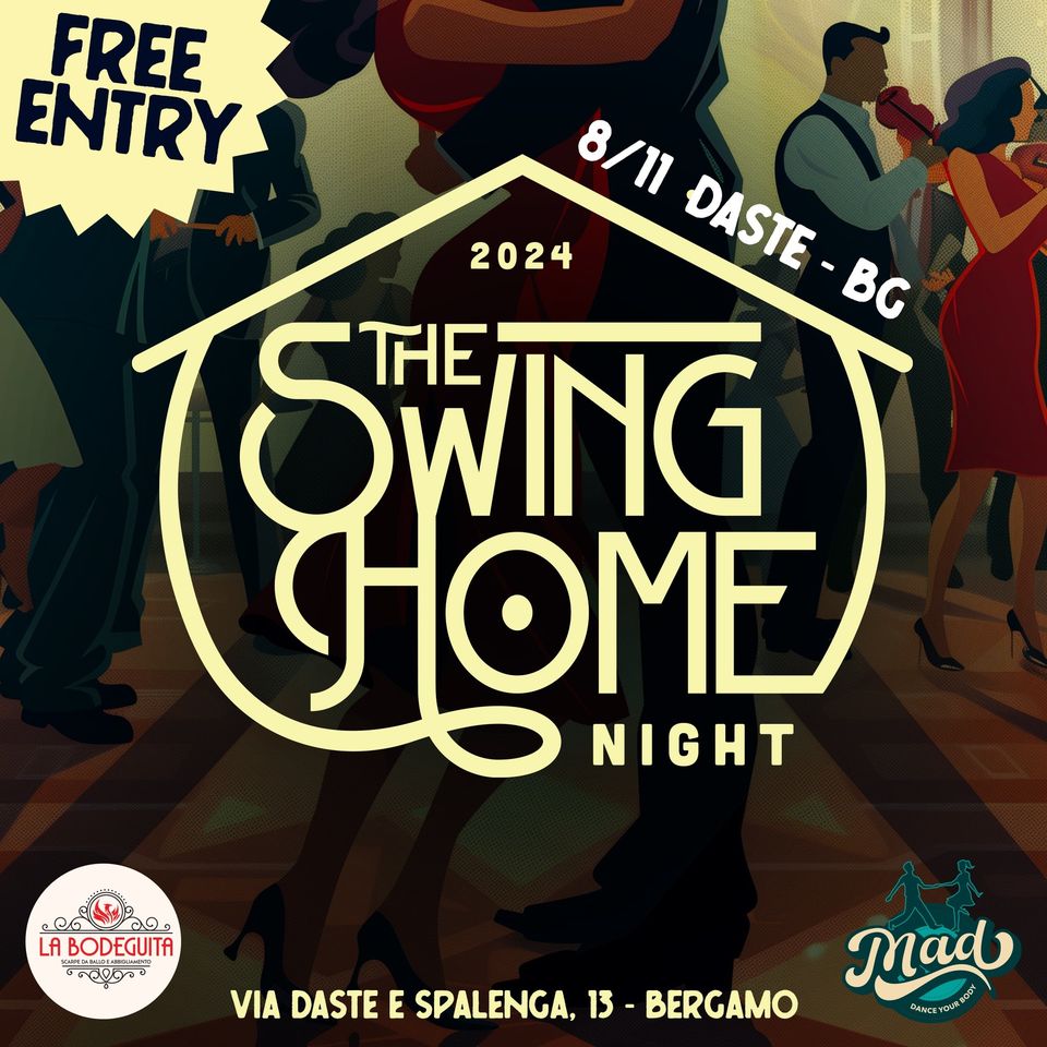 The Swing Home è una pausa dal nostro tempo per un viaggio dettato dalla musica dagli anni 20 ai 60, travolti dall'energia artistico-culturale dell'epoca. DJ-set e Live Music Performance vi accompagneranno dall'aperitivo a tarda sera... e se non conoscete i passi, non vi preoccupate, ve li insegniamo noi!!! Boogie Woogie travolgenti, Lindy Hop scatenati, Drink di qualità, Market Corner rigorosamente in stile vintage e un' atmosfera nostalgica al punto giusto. Tu vieni, ma sappi che poi non potrai più farne a meno!