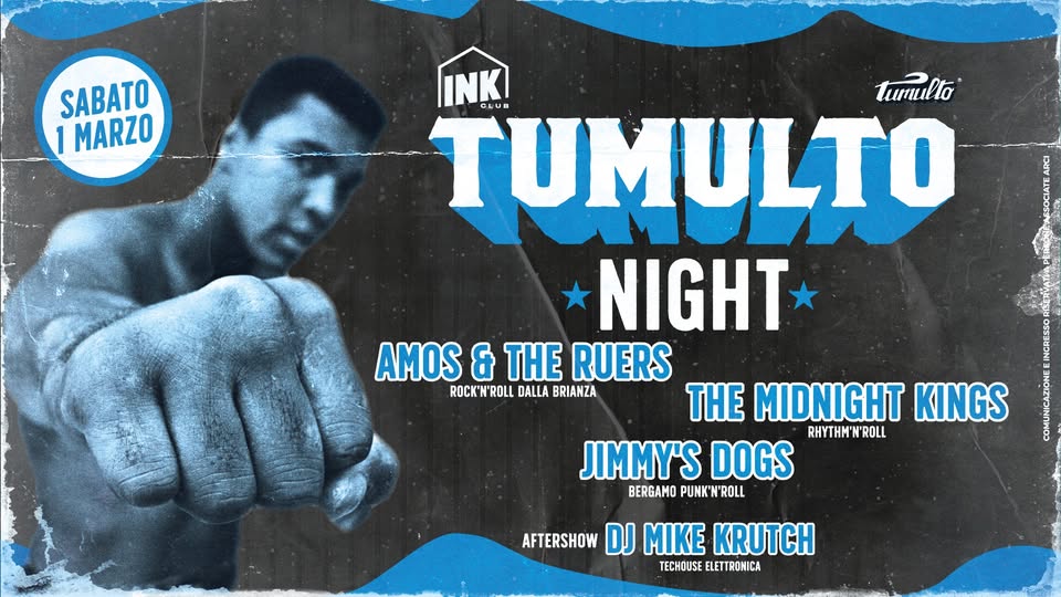 TUMULTO NIGHT è in arrivo all'Ink Club di Bergamo, pronto a scuotere la città con una serata di puro rock'n'roll e punk’n’roll che ti farà saltare e ballare fino all'ultimo beat!