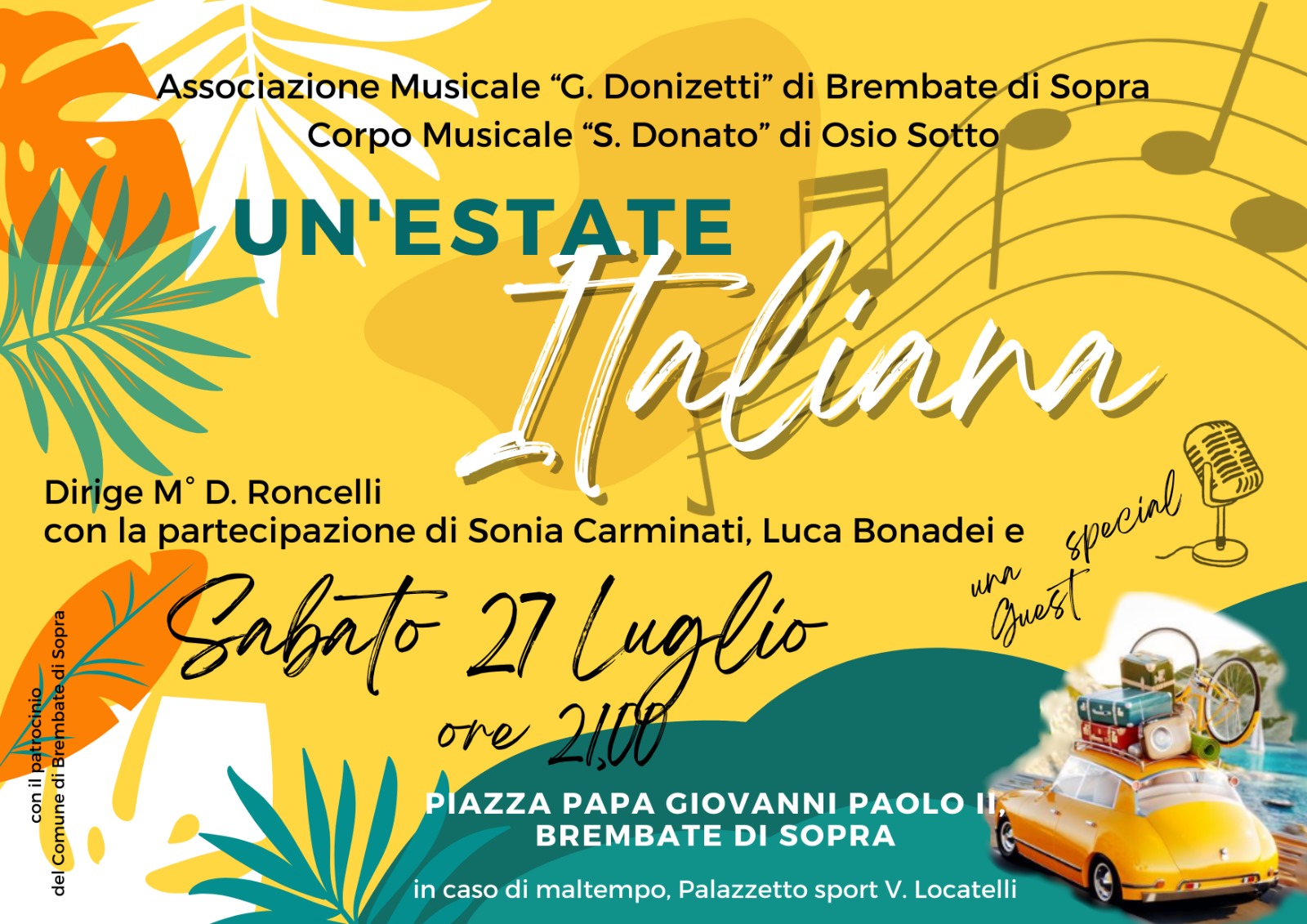 Sabato 27 luglio a Brembate di Sopra รจ in programma un concerto di musica pop italiana.