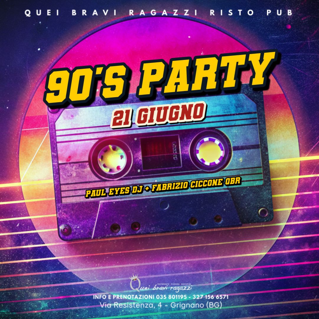 Quei Bravi Ragazzi Risto Pub vi aspetta per una notte di musica, gusto e divertimento... tutto rigorosamente in stile Nineties!