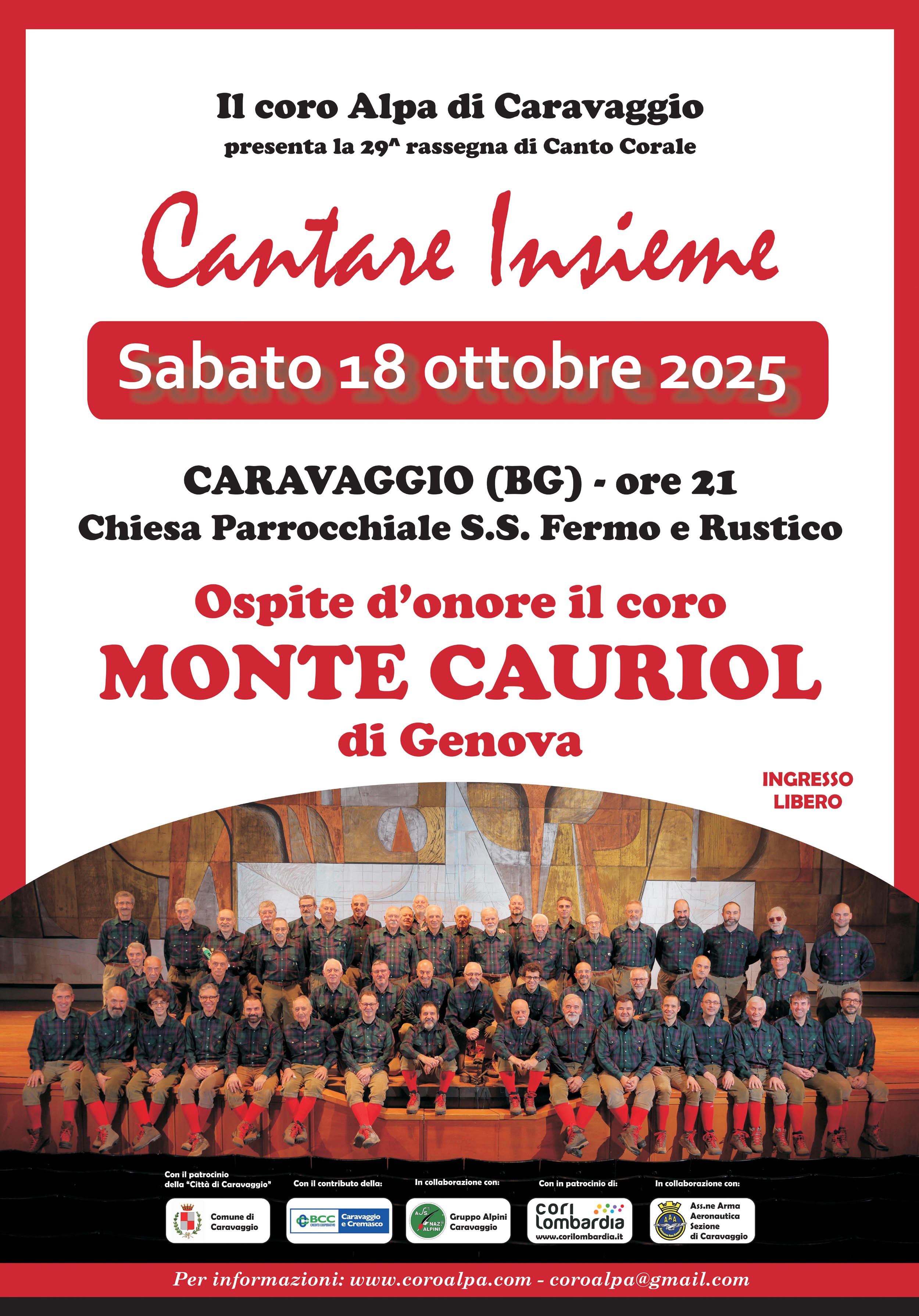 29esima edizione della kermesse canora che vede giungere a Caravaggio, per la terza volta in 28 anni, il prestigioso coro Monte Cauriol di Genova, vero capostipite dei cori alpini e popolari italiani.