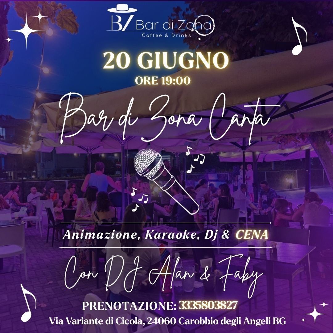 Una serata speciale tra amici con buona musica, karaoke, animazione e una cena gustosa: il 20 giugno al B/Bar di Zona vi aspetta un mix perfetto di divertimento e relax per iniziare lโestate nel modo migliore!