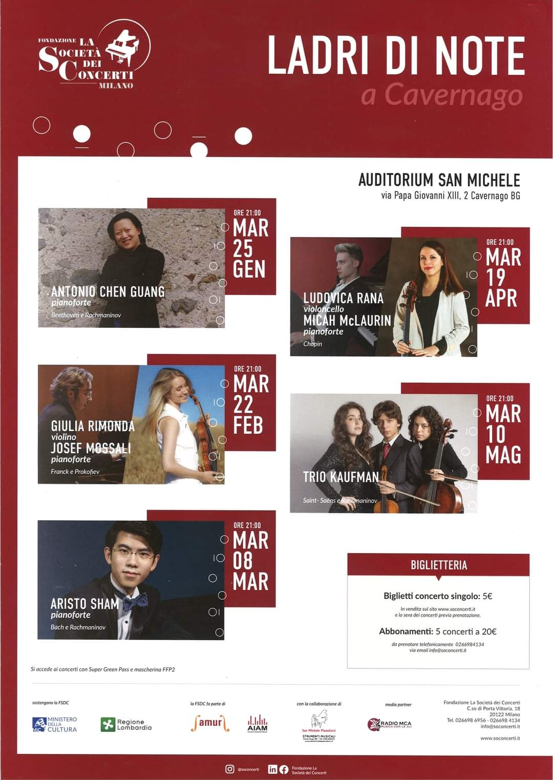 Continuano gli appuntamenti all'insegna della musica della rassegna "Ladri di note" all'Auditorium San Michele di Cavernago.