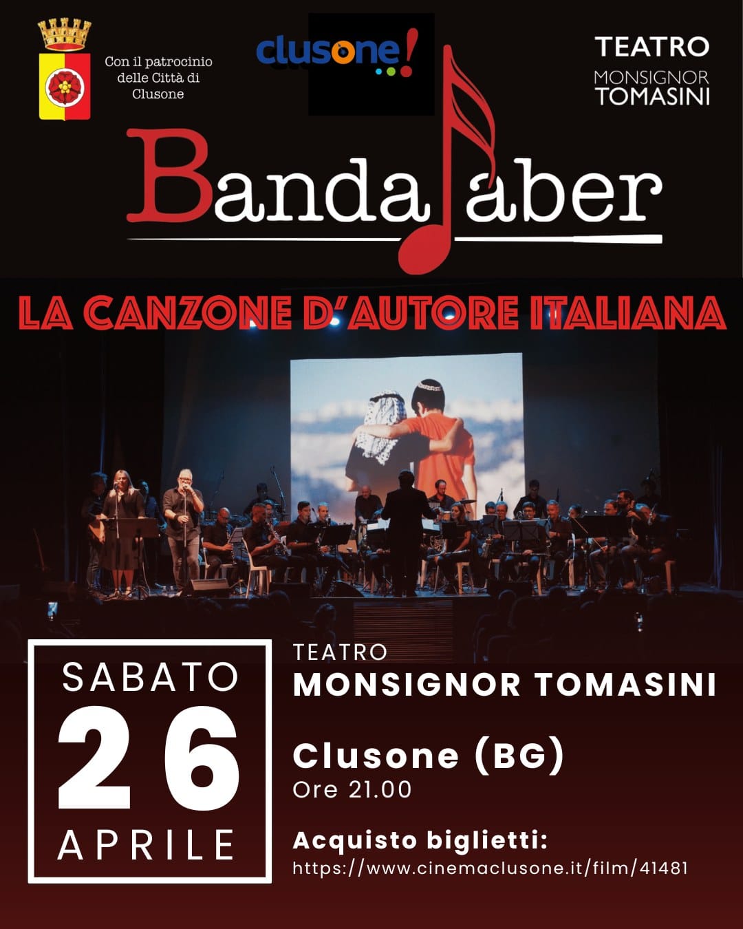 Dopo l'incredibile successo dello scorso anno, Banda Faber torna a Clusone per un nuovo imperdibile concerto! "La banda Faber è una formazione atipica seppur fresca, in oltre 30 sul palco con Maestro di direzione. Abbiamo creato il nostro suono: dal Tributo a De Andrè (il nome lo dichiara - siamo stati riconosciuti dalla fondazione dell’artista come Band ufficiale della Lombardia), abbiamo ampliato il nostro repertorio, da Gaber e Jannacci con il comico Leonardo Manera, ad un omaggio a Dalla e Battisti con Marco Ferradini... oggi portiamo in giro “la canzone d’autore italiana” ovvero i grandi testi e le meravigliose melodie del cantautorato italiano che riteniamo essere un nostro grande patrimonio culturale".
