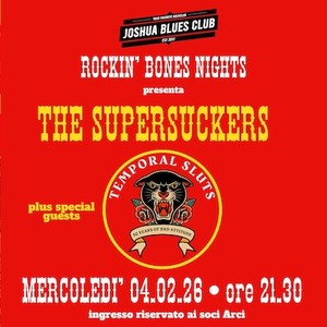 Supersuckers live. Band americana formata nel 1988 in Arizona, nota per mescolare punk, rock’n’roll e influenze country. Prime pubblicazioni sulla scena indipendente (tra cui Sub Pop) e riconoscimento per i loro live intensi Formati a Tucson, Arizona nel 1988. Prime uscite pubblicate da Sub Pop. Mescolano punk, rock’n’roll e country. Membri noti includono Eddie Spaghetti (voce e basso) e Rontrose Heathman (chitarra). Hanno fatto da spalla a band come Ramones, Social Distortion, Bad Religion, Motörhead, Butthole Surfers e Pearl Jam.