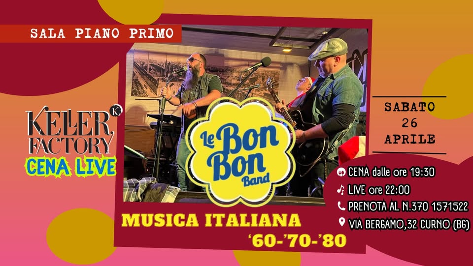 Lasciatevi trasportare dalle emozioni e dalle note indimenticabili della musica dei Le Bon Bono. Una serata magica che vi farà cantare e ballare a squarciagola!