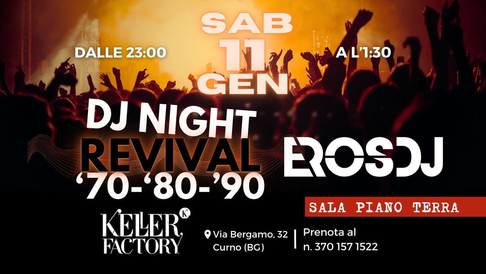 Di notte il Keller Factory si trasforma! Eros DJ presenta una serata dedicata agli anni '70, '80 e '90. Una serata da non perdere per un viaggio nel tempo!