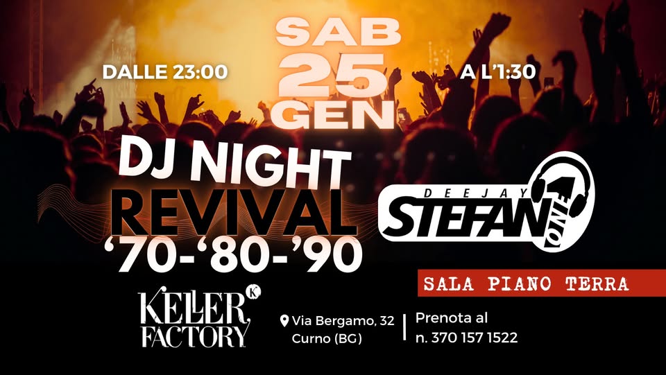Di notte il Keller Factory si trasforma! Eros DJ presenta una serata dedicata agli anni '70, '80 e '90. Una serata da non perdere per un viaggio nel tempo!