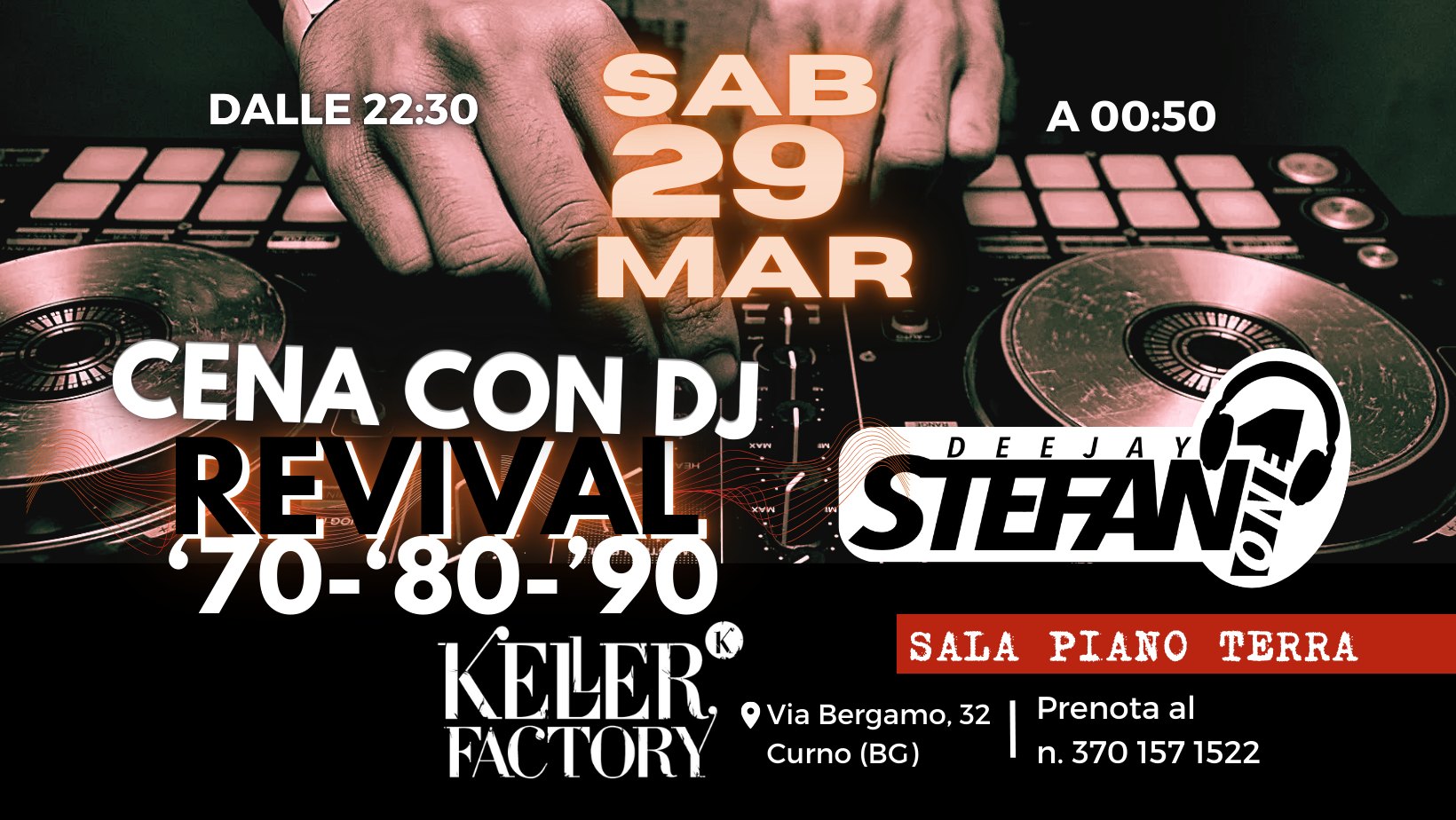 Di notte il Keller Factory si trasforma! DJ StefanOne è pronto a farvi viaggiare nel tempo con una selezione esplosiva dei più grandi successi degli anni '70, '80 e '90! Una serata da non perdere per un viaggio nel tempo!