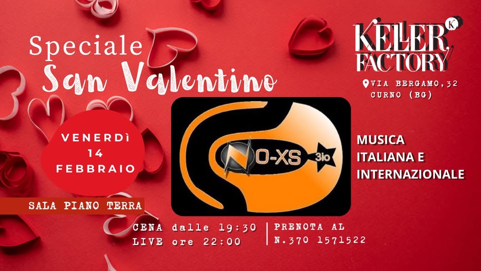 San Valentino Speciale al Keller Factory. Una serata magica per celebrare l’amore, la buona musica e i momenti indimenticabili! Sul nostro palco, i NO-XS Trio, una band straordinaria che ti farà innamorare con il loro repertorio unico di musica italiana e internazionale.
