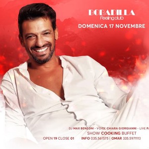 Dalle ore 19,00 la ricca cena a buffet ad isole tematiche e questa domenica a seguire si balla fino all’una del mattino con la musica dal vivo di Pago", con dj Max Benzoni (hit ’80-’90 fino ad arrivare ai giorni nostri) e con la voce della bellissima Chiara Giorgianni, il tutto contornato dalla nostra animazione made in Boba.