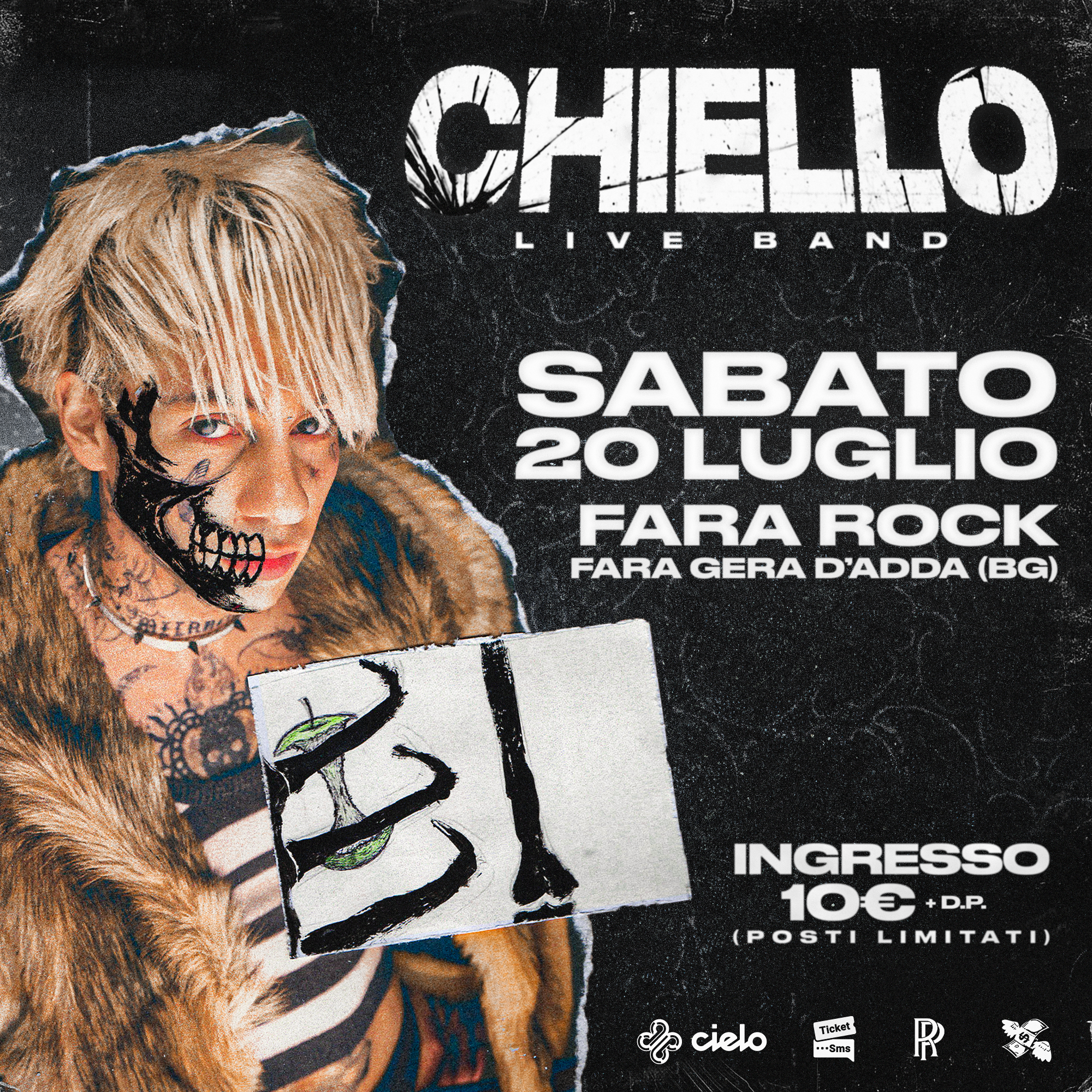 Per tutte le mele marce, per i noccioli non tolti dall'anguria, per chi beve acqua salata, arriva con la sua band e la sua poesia rock Chiello, accompagnato da Irbis e dimitri.