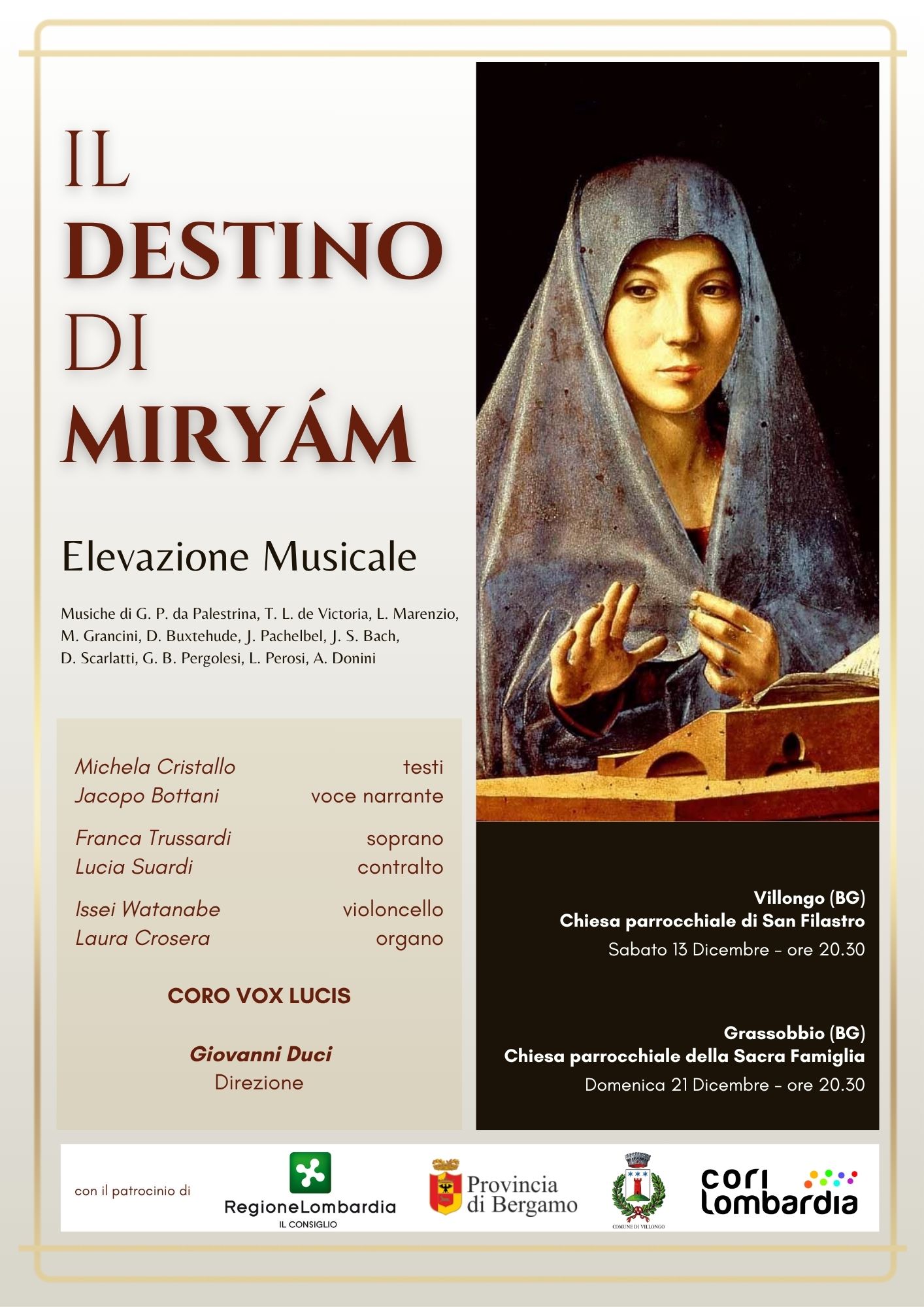 Con il patrocinio di Regione Lombardia, Provincia di Bergamo, Comune di Villongo e Cori Lombardia.