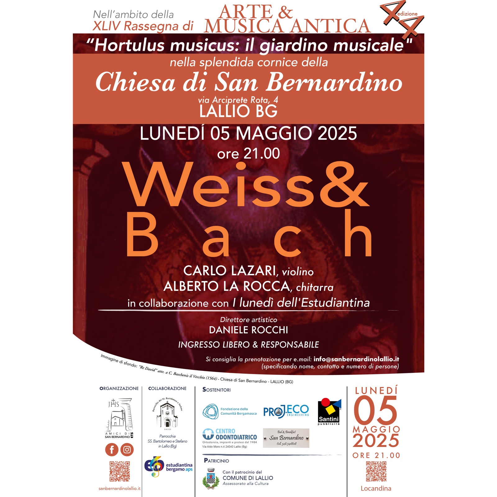 Il concerto del duo Carlo Lazari (violino) e Alberto La Rocca (chitarra) presenta un approfondito lavoro di trascrizione che il chitarrista veneto ha realizzato sulla suite per liuto SW 47 nelle due versioni (una per chitarra sola e l’altra con accompagnamento di violino composta da Bach).