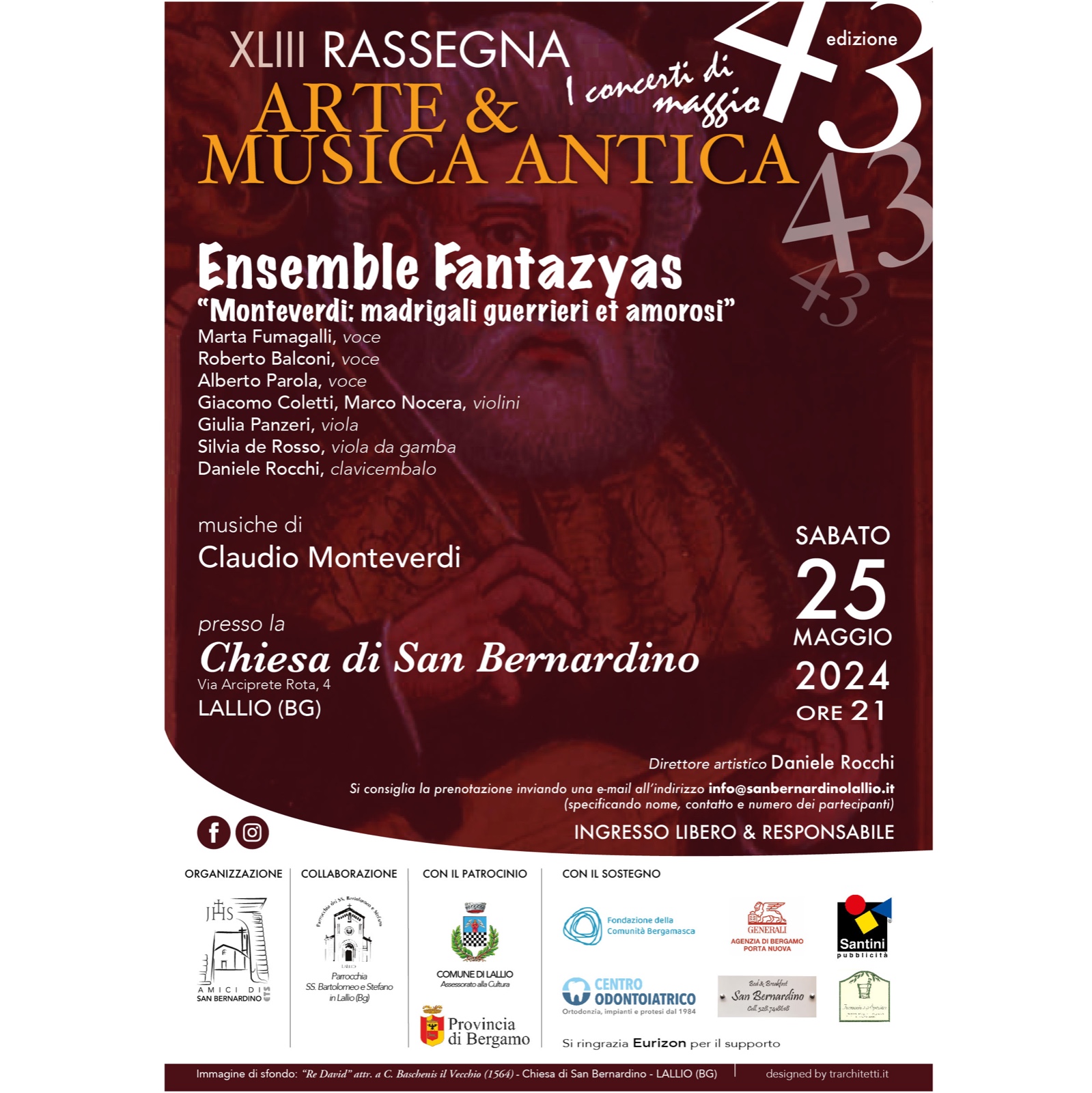 Le musiche di Monteverdi sono lo sfondo in cui si celebra il famoso combattimento di Tancredi e Clorinda, sui passi tratti dalla Gerusalemme Liberata di Torquato Tasso. E poi lo stesso musicista si cimenta in altri madrigali con "La favola di Orfeo" con i suoi dialoghi con Euridice. Le voci di Marta Fumagalli, Roberto Balconi e Alberto Parola saranno accompagnati da altri musicisti dell'Ensemble Fantazyas: Giacomo Coletti, Marco Nocera con i loro violini, Giulia Panzeri - viola, Silvia De rosso - viola da gamba, Daniele Rocchi-clavicembalo.