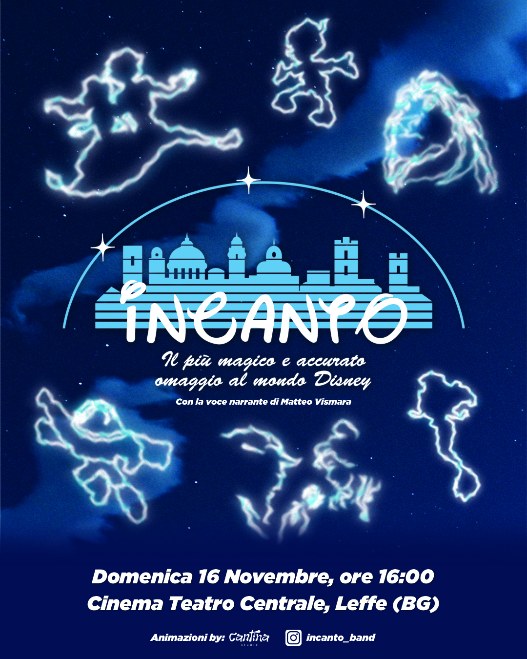 In occasione della festa di San Martino, l’assessorato alla Cultura del Comune di Leffe invita tutti, grandi e piccini, a vivere un pomeriggio di pura magia con il concerto «Incanto», il più magico e accurato omaggio al mondo Disney a cura del gruppo Incanto Band.