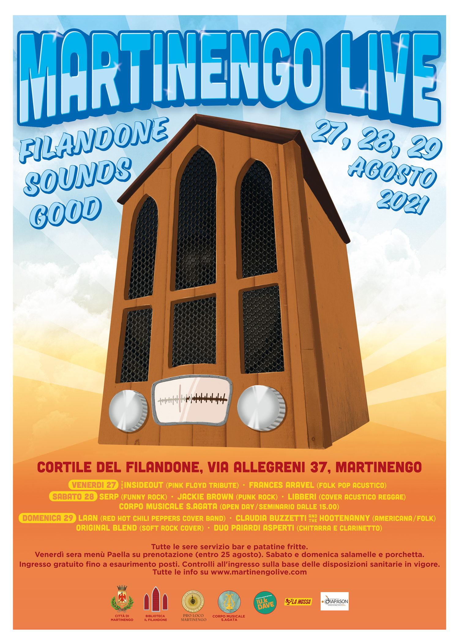 Da venerdì 27 a domenica 29 agosto tre serate di grande musica e non solo! Vi aspettiamo nel cortile del Filandone di Martinengo (Via Allegreni, 37).