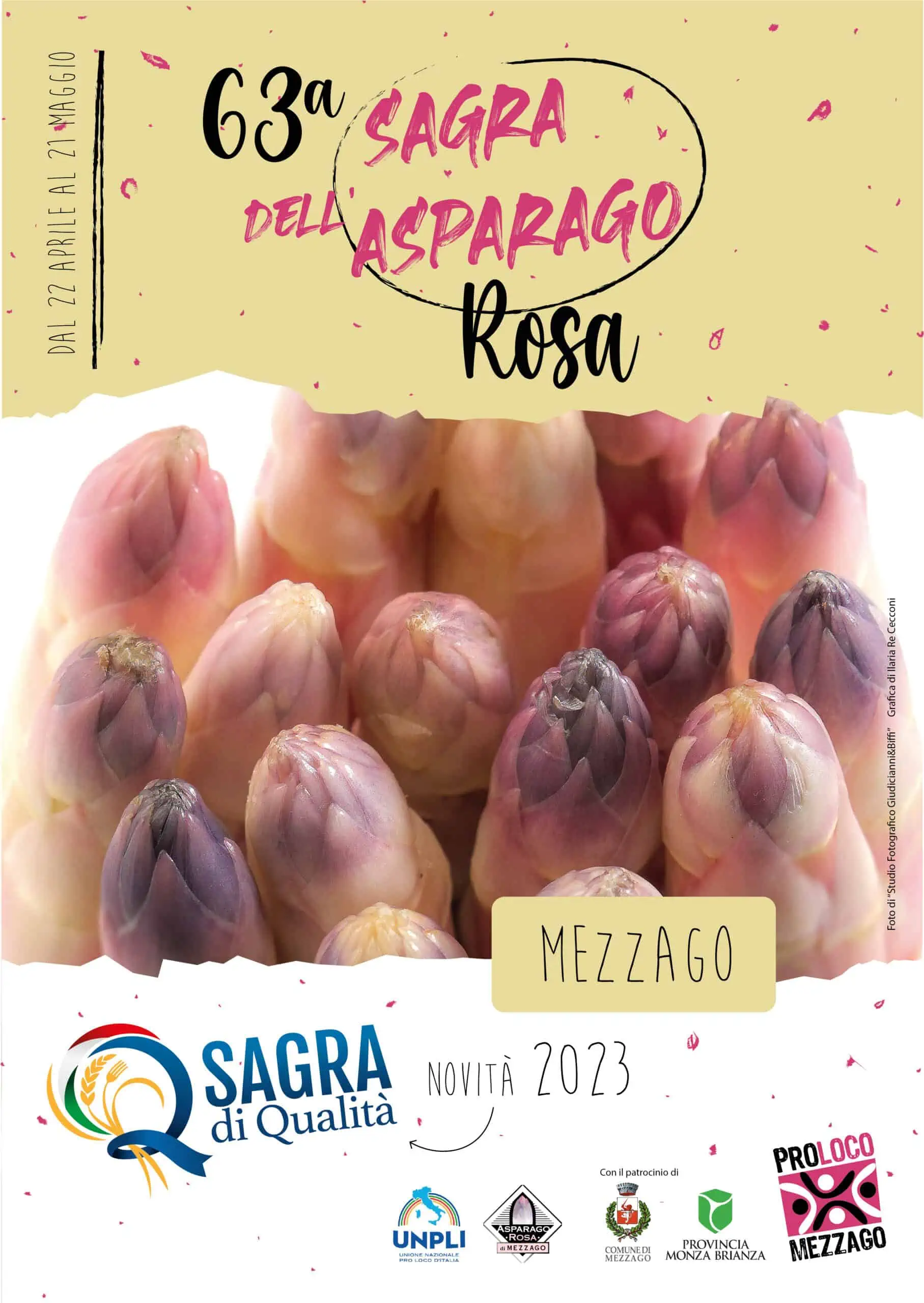 Come ogni primavera rispuntano i nostri amati asparagi rosa ed eccoci qui, giร a spegnere le sessantatrรฉ candeline della Sagra dellโAsparago Rosa di Mezzago, la tradizionale kermesse gastronomica, culturale e conviviale che ruota attorno al nostro famoso e prelibato ortaggio!