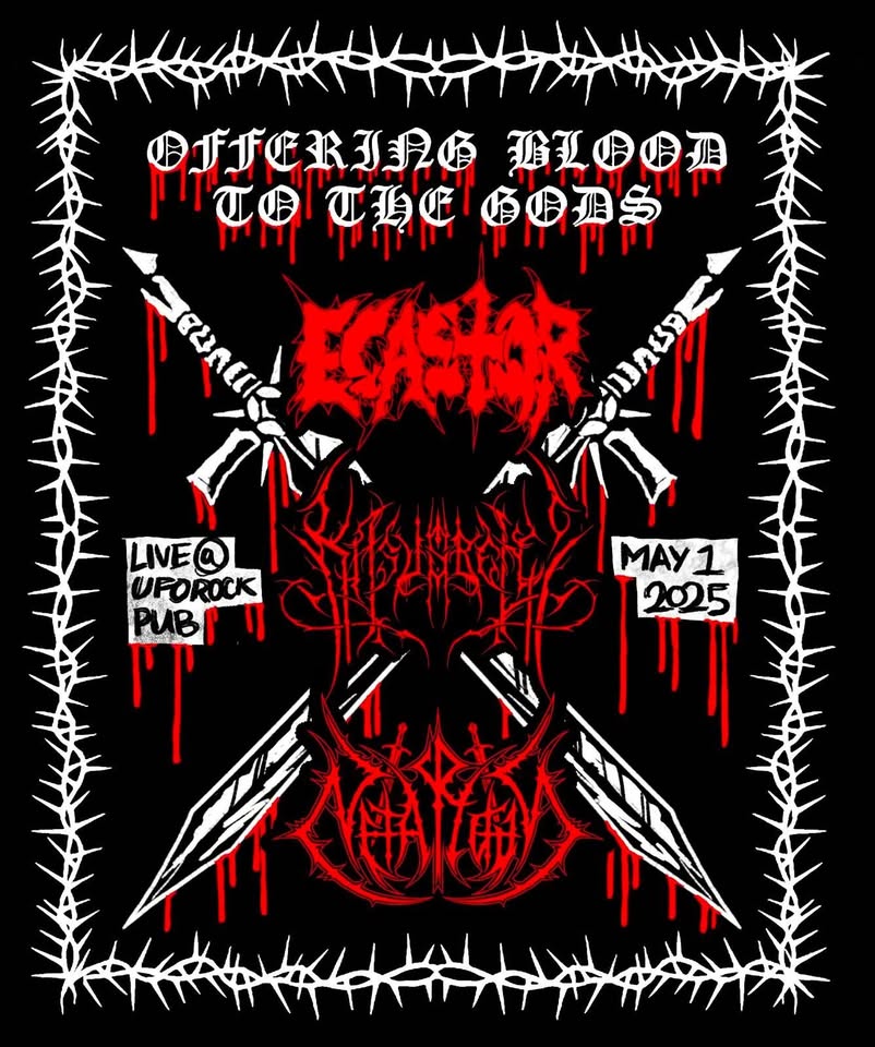 "Offering Blood to the Gods" è un festival metal dedicato agli amanti dei suoni estremi, una serata pensata per chi preferisce l’energia brutale del death, la furia del black e la potenza travolgente del thrash metal.