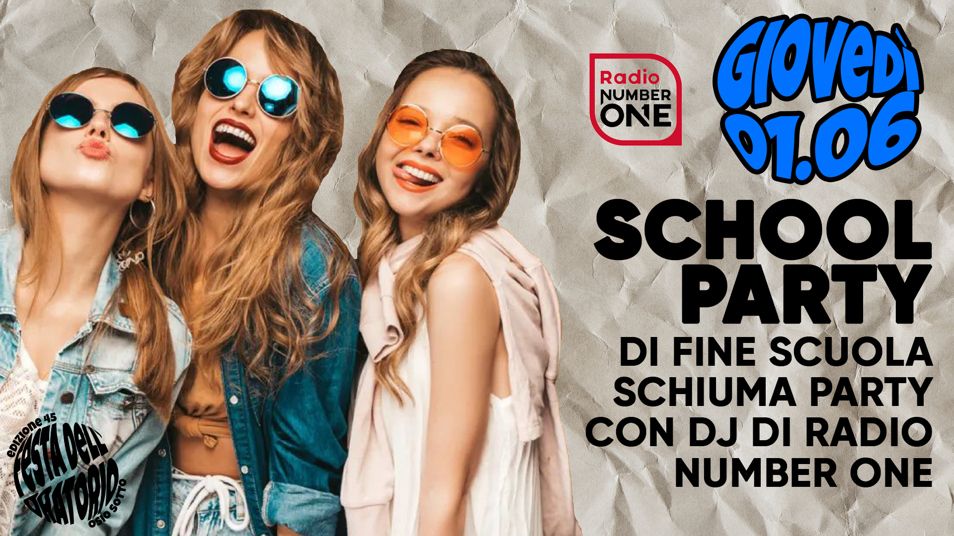 Dopo il successo dello scorso anno, torna lo school party di fine anno con mega schiuma party, animato dal dj di Radio Number One.
