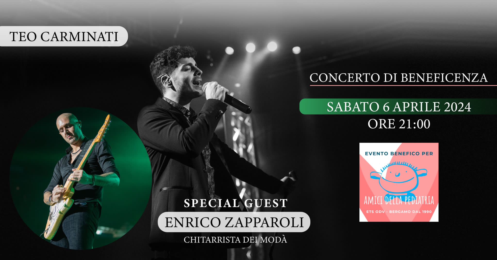 Teo Carminati (originario di Locatello) e la sua band si esibiranno con Enrico Zapparoli (chitarrista dei Modà) presso la sala della comunità dell'oratorio di Osio Sotto in un concerto di beneficienza.