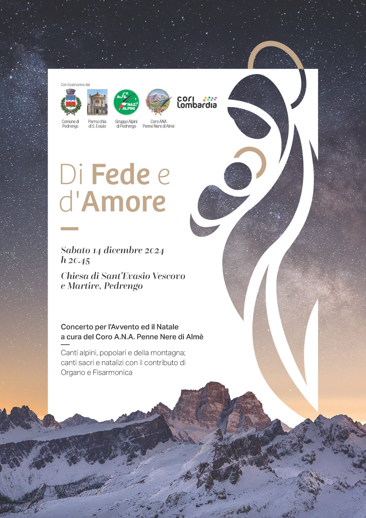 Concerto musicale di canti alpini, popolari e della montagna per celebrare il periodo dell'Avvento e del Natale. Un'occasione speciale per condividere la bellezza della musica e lo spirito del Natale con tutta la famiglia.