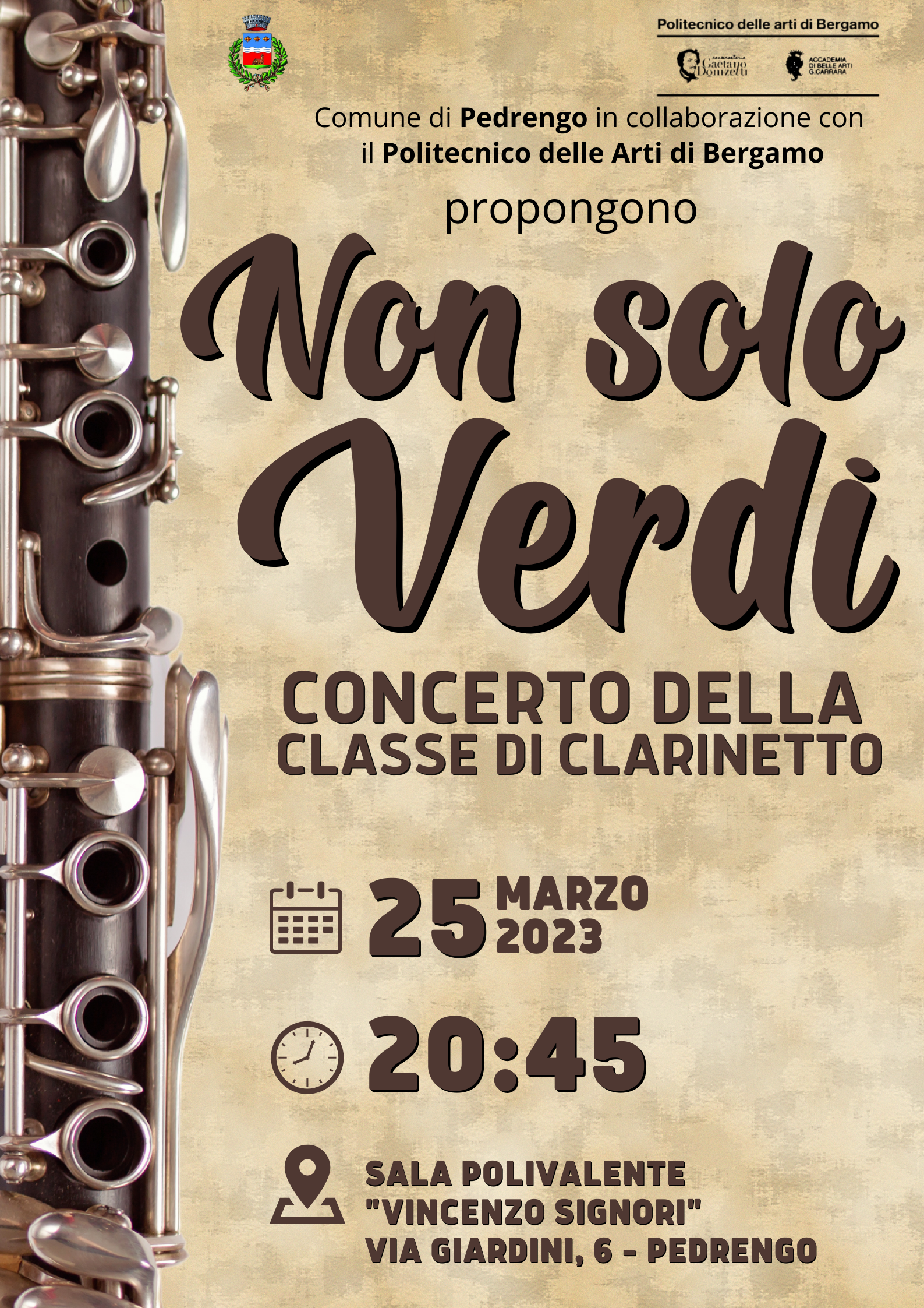 Il Comune di Pedrengo in collaborazione con il Politecnico delle Arti di Bergamo propongono un delizioso concerto della classe di Clarinetto.